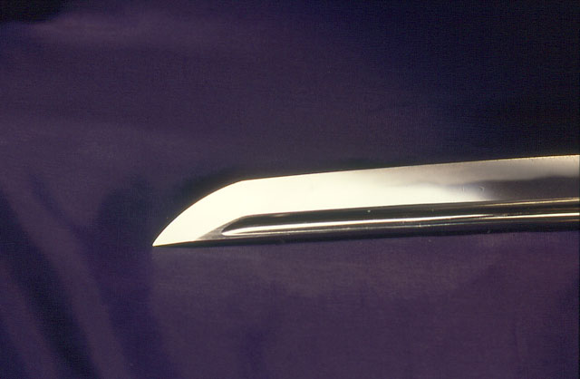 この太刀は、鎌倉時代中期の代表的な刀匠、備前長船派の創始者である光忠の子・順慶長光の作です。なお、この太刀は古くは真田幸村が所持していたものと伝えられてます。長さ71.9㎝、反り2.2㎝で、刀身の焼刃模様は、丁字の乱れ刃で映り立っていて極めて美しく健全です。